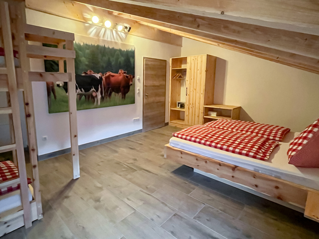 - Familien-Schlafzimmer mit Doppelbett und Stockbett