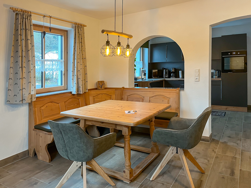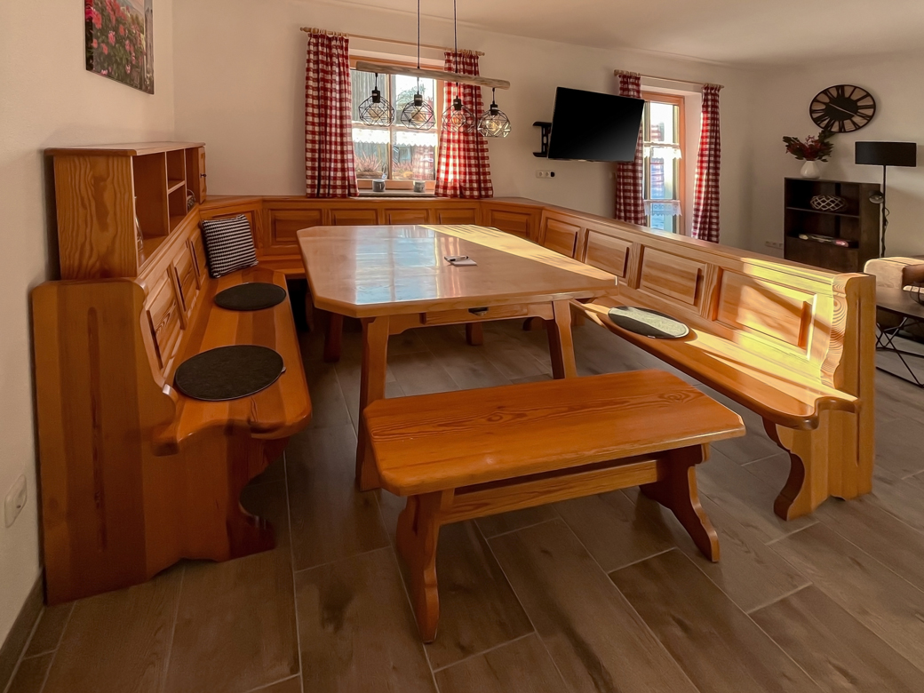 - Essbereich mit Tisch und Eckbank